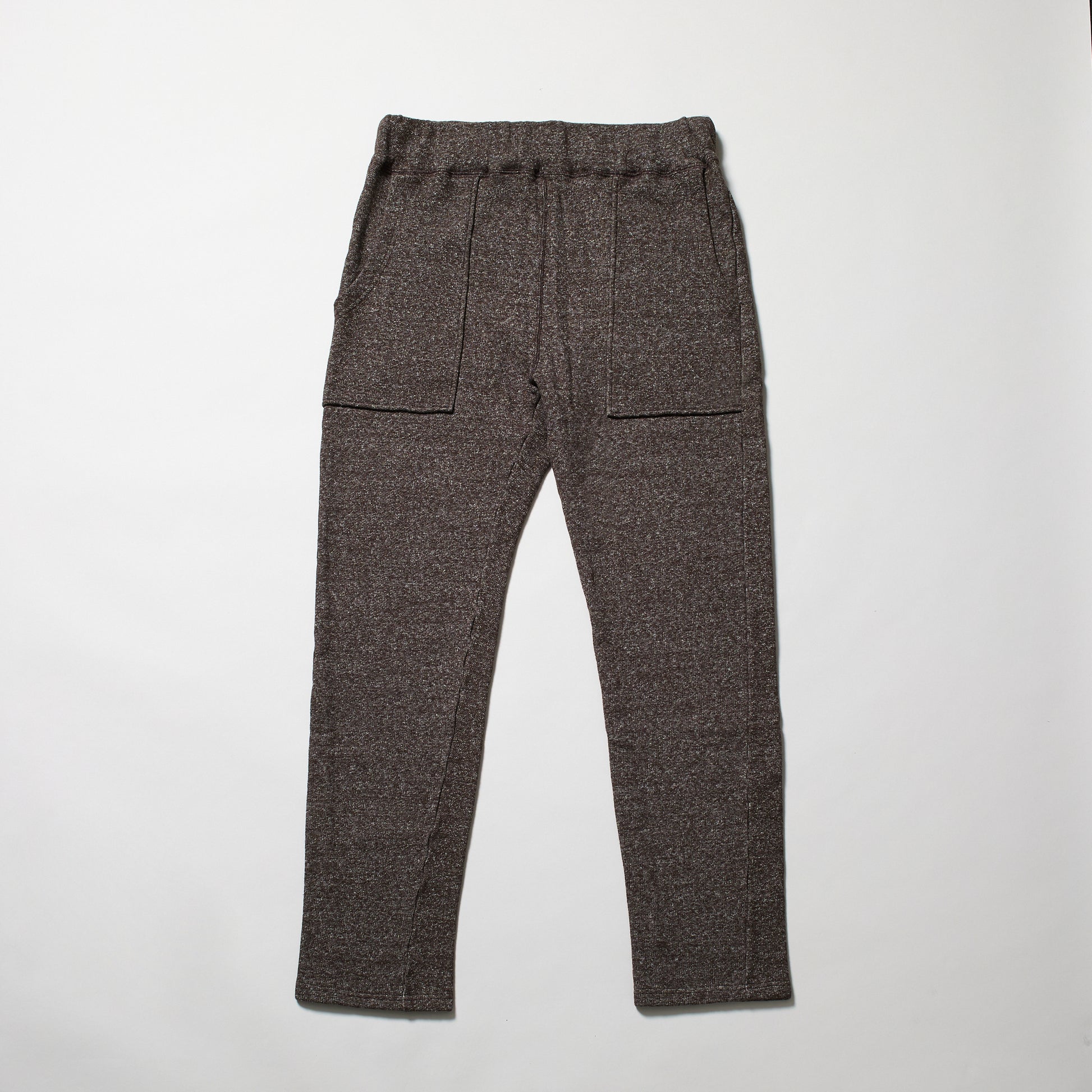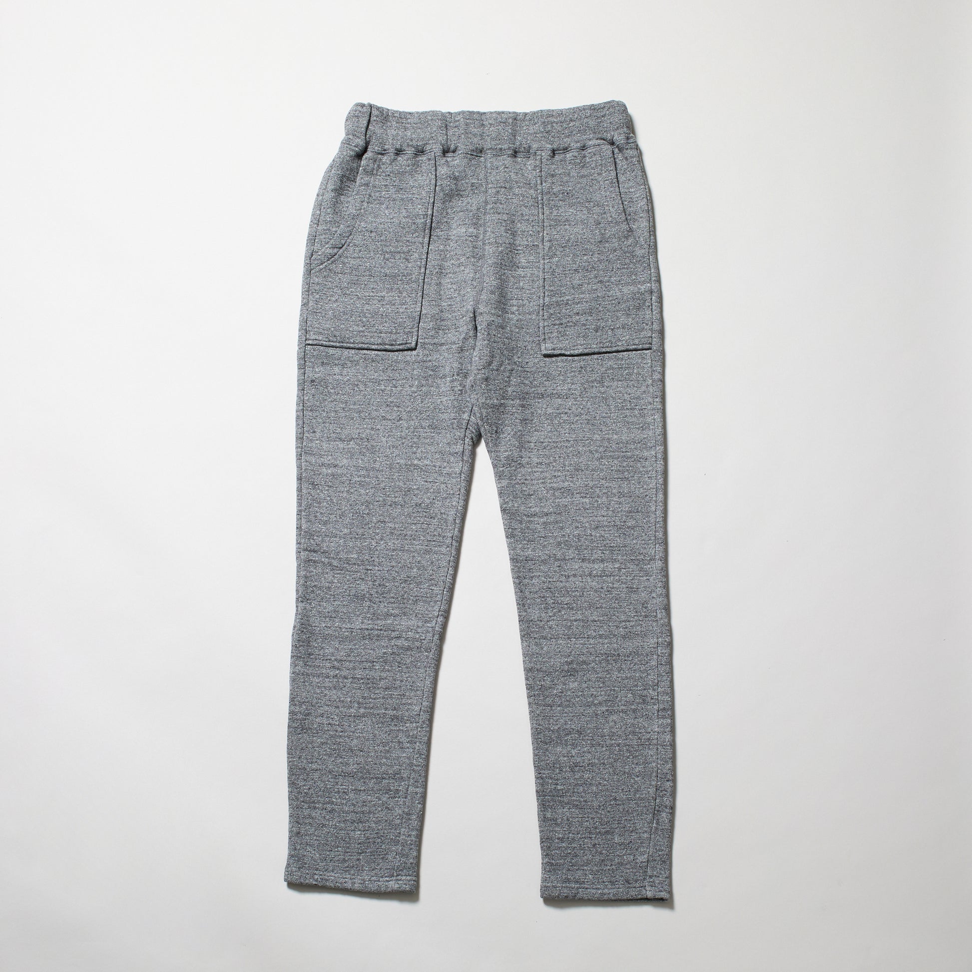 ワークパンツで人気のベイカーパンツをスウェットで再現、すっきりとしたシルエットの万能パンツです。
