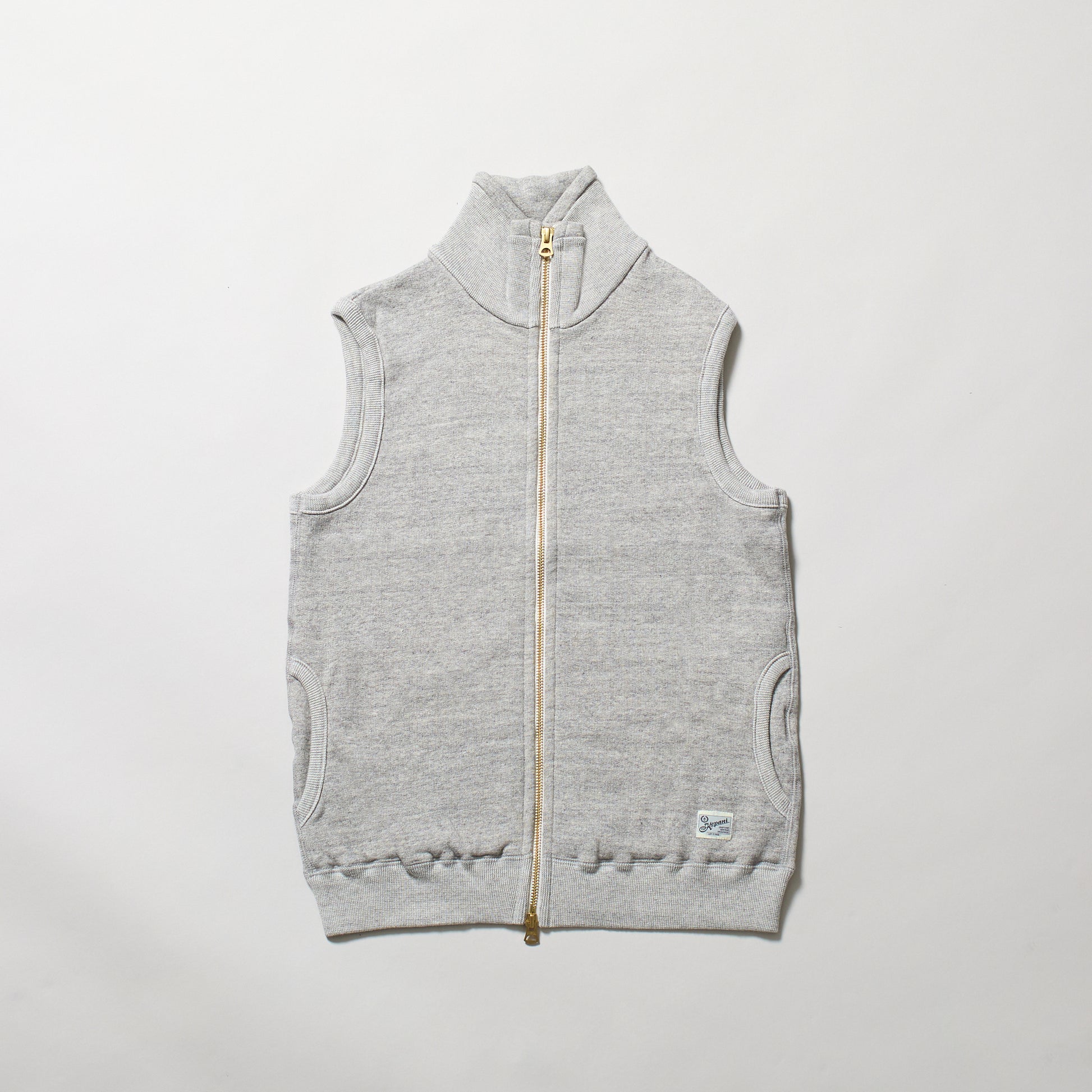 スウェットでは珍しいベスト、シャツにもカットソーにも合わせやすいデザインです。